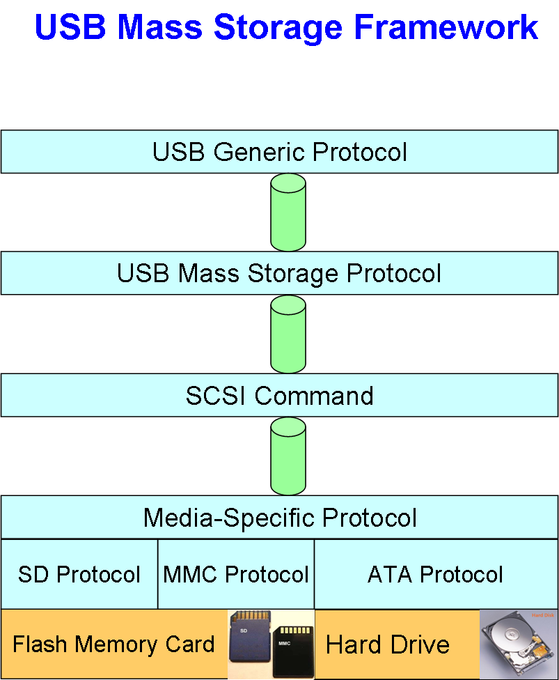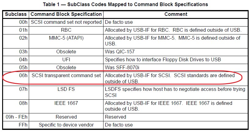 其次,需要关心USB Device内部和数据存储介质之间通信的协议