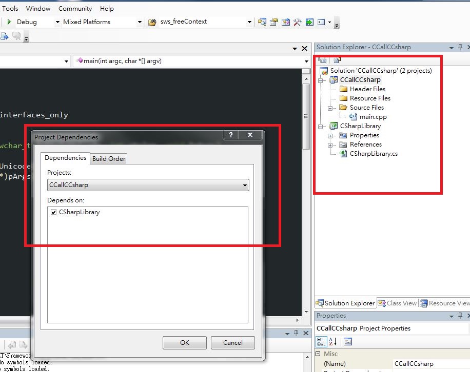 #include <locale.h> #include <windows.h> // Import the type library. #import "CSharpLibrary.tlb" raw_interfaces_only using namespace CSharpLibrary; int __stdcall CCallbackFunction(wchar_t *pStrInUnicode, int strlen, void *pArgs) { wprintf(TEXT("%s\n"), pStrInUnicode); wprintf(TEXT("%d\n"), *((int*)pArgs)); return 0; }/*CCallbackFunction*/ int main(int argc, char *argv[]) { HRESULT hr; /*Set current unicode*/ setlocale(LC_ALL,""); // Initialize COM. hr = CoInitialize(NULL); // Create the interface pointer. ManagedInterfacePtr CSharpDLLPtr(__uuidof(ManagedCSharpClass)); { long lResult = 0; int intArray[10], sum; int i; for(i = 0; i< 10; i++) intArray[i] = i; // Call the ArraySum method CSharpDLLPtr->ArraySum((long)&intArray[0], sizeof(intArray), (long*)&sum, &lResult); wprintf(L"The result is %d\n", lResult); }/*local variables*/ { long nCallbackResult; int someNum; someNum = 4; CSharpDLLPtr->CalltheCallbackFun((long)CCallbackFunction, (long)&someNum, &nCallbackResult); wprintf(L"The nCallbackResult is %d\n", nCallbackResult); }/*local variables*/ // Uninitialize COM. CoUninitialize(); return 0; }