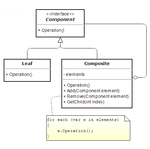 呃….延長線的比喻有個小問題:它在外觀上看起來也像是層層串接,容易和 Decorator 模式混淆。事實上,這兩種設計模式在結構上的確有相似之處。下圖所示為 Composite 模式的結構圖。