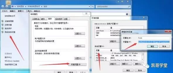 设置方法为计算机属性=>高级设置=》环境变量=》path。