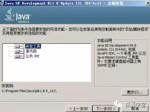 将下载好的JDK解压,点击安装,(也可拷贝,为免安装注册软件)勾选开发工具。点击下一步进行安装。