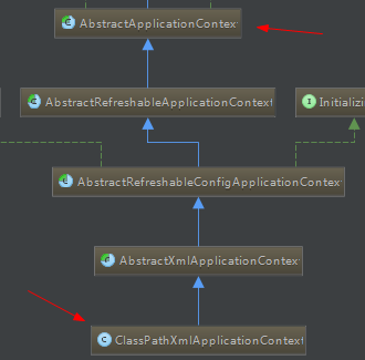 实例化的工作会在容器启动后过AbstractApplicationContext中reflash方法自动进行。我们常用的ApplicationContext实现类ClassPathXmlApplicationContext继承了AbstractApplicationContext类,继承关系如下图.