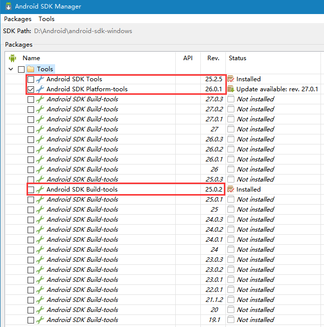 如下图,SDK manager必要配置: