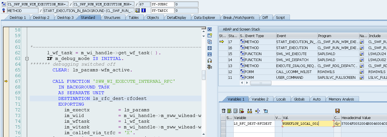 Once you finished debugging, you can go back to SWI1 and three background steps have already been marked as COMPLETED.