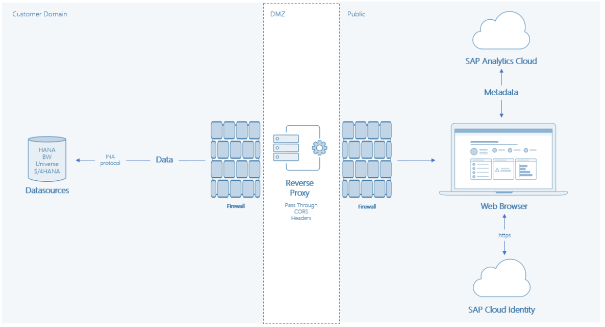 在Live connection的场景里,Analytics Cloud只存储metadata. SAP Analytics Cloud stores queries for building the stories, measure names, columns names, filter values, and so on. Basically, the metadata lets SAP Analytics Cloud rebuild the query. But none of the actual data, not even the query results or part of the results, such as totals, are saved to SAP Analytics Cloud. Metadata is transferred to your browser and encrypted in memory.