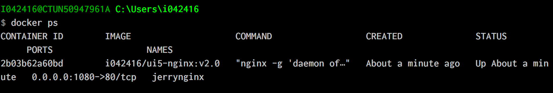 docker run -d -p 1080:80 --name jerrynginx i042416/ui5-nginx:v2.0