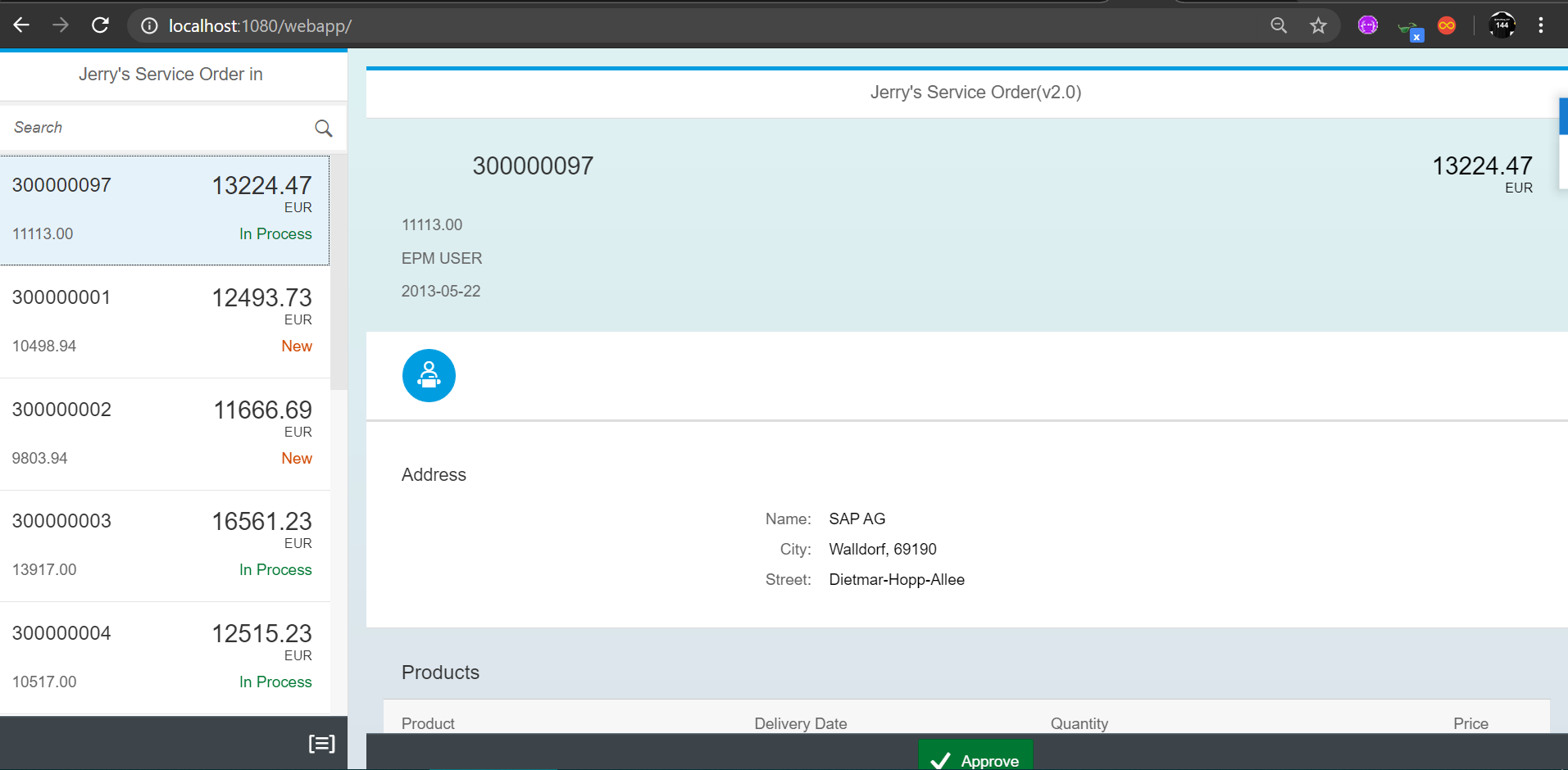 执行完命令行之后,浏览器输入如下url,即可访问到运行在容器内的Nginx之上的SAP UI5应用: