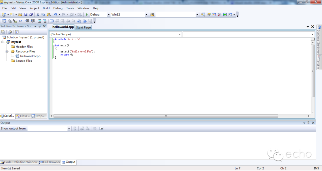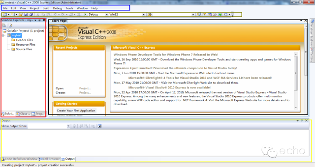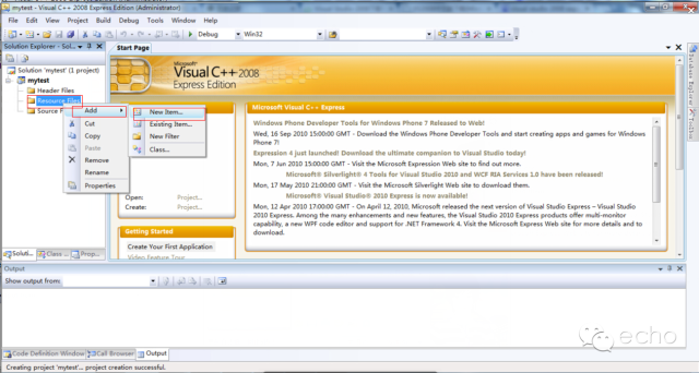 (1)上面编译完成后,会生成可执行文件:F:\vs2008\project\mytest\Debug\mytest.exe,双击这个程序,程序就开始运行了。