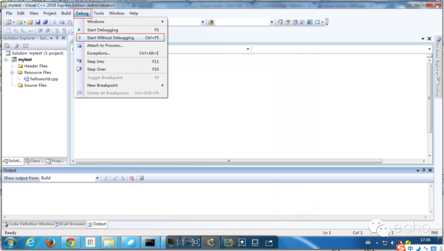 (2)也可以再VS的工具栏里:Debug --> Start Debuggion/Start Without Debuggion 或者(F5/Ctrl+F5)