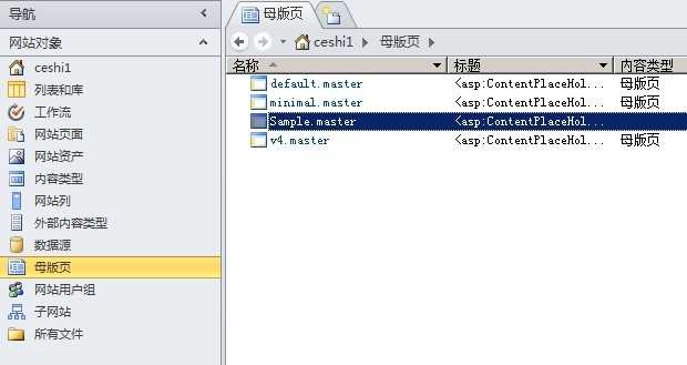15 打开Designer,可以看得到新母版页已加入到指定目录