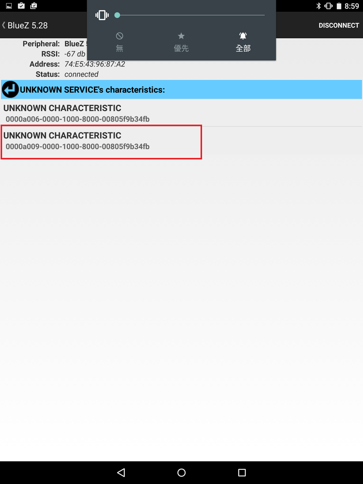 /* * * BlueZ - Bluetooth protocol stack for Linux * * Copyright (C) 2011-2012 David Herrmann <dh.herrmann@googlemail.com> * * * This program is free software; you can redistribute it and/or modify * it under the terms of the GNU General Public License as published by * the Free Software Foundation; either version 2 of the License, or * (at your option) any later version. * * This program is distributed in the hope that it will be useful, * but WITHOUT ANY WARRANTY; without even the implied warranty of * MERCHANTABILITY or FITNESS FOR A PARTICULAR PURPOSE. See the * GNU General Public License for more details. * * You should have received a copy of the GNU General Public License * along with this program; if not, write to the Free Software * Foundation, Inc., 51 Franklin St, Fifth Floor, Boston, MA 02110-1301 USA * */ #ifdef HAVE_CONFIG_H #include <config.h> #endif #include <unistd.h> #include <stdbool.h> #include <bluetooth/bluetooth.h> #include <glib.h> #include "lib/uuid.h" #include "src/plugin.h" #include "src/adapter.h" #include "src/shared/util.h" #include "src/log.h" #include "attrib/gattrib.h" #include "attrib/gatt-service.h" #include "attrib/att.h" #include "attrib/gatt.h" #include "attrib/att-database.h" #include "src/attrib-server.h" #define MAX_STR_LEN (256) #define SIMPLE_SVC_UUID 0xfff0 #define SIMPLE_READ1_CHAR_UUID 0xfff1 #define SIMPLE_READ2_CHAR_UUID 0xfff2 #define SIMPLE_WRITE_CHAR_UUID 0xfff3 #define SIMPLE_NOTIFY_CHAR_UUID 0xfff4 static char read1Data[MAX_STR_LEN]; static char read2Data[MAX_STR_LEN]; static int notifyData; static uint8_t SimpleCharacteristic1Read(struct attribute *a, struct btd_device *device, gpointer user_data) { struct btd_adapter *adapter; printf("__FILE__ = %s, __FUNCTION__ = %s, __LINE__ =%d\n", __FILE__, __FUNCTION__, __LINE__); adapter = user_data; attrib_db_update(adapter, a->handle, NULL, (uint8_t*)&read1Data[0], strlen(&read1Data[0]), NULL); return 0; }/*Characteristic1Read*/ static uint8_t SimpleCharacteristic2Read(struct attribute *a, struct btd_device *device, gpointer user_data) { struct btd_adapter *adapter; printf("__FILE__ = %s, __FUNCTION__ = %s, __LINE__ =%d\n", __FILE__, __FUNCTION__, __LINE__); adapter = user_data; attrib_db_update(adapter, a->handle, NULL, (uint8_t*)&read2Data[0], strlen(&read2Data[0]), NULL); return 0; }/*Characteristic2Read*/ static uint8_t SimpleCharacteristicWrite(struct attribute *a, struct btd_device *device, gpointer user_data) { unsigned char data[MAX_STR_LEN]; int i; printf("__FILE__ = %s, __FUNCTION__ = %s, __LINE__ =%d\n", __FILE__, __FUNCTION__, __LINE__); memset(&data[0], 0, MAX_STR_LEN); memcpy(&data[0], a->data, a->len); printf("written data : %s \n", &data[0]); for(i = 0; i< a->len;i++) printf("%#1x ", (unsigned char)(data[i])); printf("\n"); return 0; }/*CharacteristicWrite*/ static uint8_t SimpleCharacteristicNotify(struct attribute *a, struct btd_device *device, gpointer user_data) { struct btd_adapter *adapter; adapter = user_data; printf("__FILE__ = %s, __FUNCTION__ = %s, __LINE__ =%d\n", __FILE__, __FUNCTION__, __LINE__); do { attrib_db_update(adapter, a->handle, NULL, (uint8_t*)¬ifyData, sizeof(notifyData), NULL); //usleep(1*1000*1000); notifyData++; }while(0); return 0; }/*CharacteristicNotify*/ static void RegisterSimpleService(struct btd_adapter *adapter) { bt_uuid_t uuid; printf("__FILE__ = %s, __FUNCTION__ = %s, __LINE__ =%d\n", __FILE__, __FUNCTION__, __LINE__); bt_uuid16_create(&uuid, SIMPLE_SVC_UUID); gatt_service_add(adapter, GATT_PRIM_SVC_UUID, &uuid, /* characteristic register*/ /*read 1*/ GATT_OPT_CHR_UUID16, SIMPLE_READ1_CHAR_UUID, GATT_OPT_CHR_PROPS, GATT_CHR_PROP_READ , GATT_OPT_CHR_VALUE_CB, ATTRIB_READ, SimpleCharacteristic1Read, adapter, /*read 2*/ GATT_OPT_CHR_UUID16, SIMPLE_READ1_CHAR_UUID, GATT_OPT_CHR_PROPS, GATT_CHR_PROP_READ , GATT_OPT_CHR_VALUE_CB, ATTRIB_READ, SimpleCharacteristic2Read, adapter, /*write*/ GATT_OPT_CHR_UUID16, SIMPLE_WRITE_CHAR_UUID, GATT_OPT_CHR_PROPS, GATT_CHR_PROP_WRITE_WITHOUT_RESP, GATT_OPT_CHR_VALUE_CB, ATTRIB_WRITE, SimpleCharacteristicWrite, adapter, /*NOTIFY*/ GATT_OPT_CHR_UUID16, SIMPLE_NOTIFY_CHAR_UUID, GATT_OPT_CHR_PROPS, GATT_CHR_PROP_READ|GATT_CHR_PROP_NOTIFY, GATT_OPT_CHR_VALUE_CB, ATTRIB_READ, SimpleCharacteristicNotify, adapter, /*end*/ GATT_OPT_INVALID); return ; }/*RegisterSimpleService*/ #define DEVICEINFO_SVC_UUID 0x180a char versionStr[MAX_STR_LEN] = "0.0.0"; char manufacturerStr[MAX_STR_LEN] = "Gaiger"; static uint8_t SoftwareRevisionStringRead(struct attribute *a, struct btd_device *device, gpointer user_data) { struct btd_adapter *adapter; printf("__FILE__ = %s, __FUNCTION__ = %s, __LINE__ =%d\n", __FILE__, __FUNCTION__, __LINE__); adapter = user_data; attrib_db_update(adapter, a->handle, NULL, (uint8_t*)&versionStr[0], strlen(&versionStr[0]), NULL); return 0; }/*SoftwareRevisionStringRead*/ static uint8_t ManufacturerStringRead(struct attribute *a, struct btd_device *device, gpointer user_data) { struct btd_adapter *adapter; printf("__FILE__ = %s, __FUNCTION__ = %s, __LINE__ =%d\n", __FILE__, __FUNCTION__, __LINE__); adapter = user_data; attrib_db_update(adapter, a->handle, NULL, (uint8_t*)&manufacturerStr[0], strlen(&manufacturerStr[0]), NULL); return 0; }/*ManufacturerStringRead*/ static void RegisterDeviceInfo(struct btd_adapter *adapter) { bt_uuid_t uuid; printf("__FILE__ = %s, __FUNCTION__ = %s, __LINE__ =%d\n", __FILE__, __FUNCTION__, __LINE__); bt_uuid16_create(&uuid, DEVICEINFO_SVC_UUID); gatt_service_add(adapter, GATT_PRIM_SVC_UUID, &uuid, /* characteristic register*/ /*GATT_CHARAC_SOFTWARE_REVISION_STRING*/ GATT_OPT_CHR_UUID16, GATT_CHARAC_SOFTWARE_REVISION_STRING, GATT_OPT_CHR_PROPS, GATT_CHR_PROP_READ , GATT_OPT_CHR_VALUE_CB, ATTRIB_READ, SoftwareRevisionStringRead, adapter, /*GATT_CHARAC_MANUFACTURER_NAME_STRING*/ GATT_OPT_CHR_UUID16, GATT_CHARAC_MANUFACTURER_NAME_STRING, GATT_OPT_CHR_PROPS, GATT_CHR_PROP_READ , GATT_OPT_CHR_VALUE_CB, ATTRIB_READ, ManufacturerStringRead, adapter, /*end*/ GATT_OPT_INVALID); re