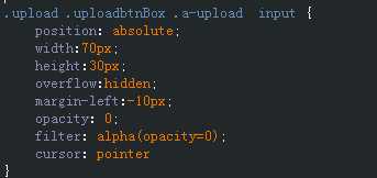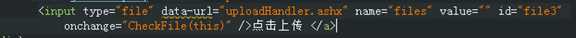 <style> body{padding:10px} /* 上传控件 */ .upload { margin-top:10px; width:280px; height:30px; } .upload .uploadbtnBox { float:left; height:30px; width:70px; margin-right:8px; } .upload .progress { height:4px; line-height:4px; *zoom:1; background:#fff; float:left; width:200px; border:1px #ccc solid; overflow:hidden; text-overflow:ellipsis; white-space:nowrap; display:none; } .upload .filestate { float:left; height:20px; text-align:left; width:150px; line-height:20px; display:none; color:#333; overflow:hidden; } .upload .progresspercent { float:right; padding-top:5px; height:15px; text-align:right; font-size:9px; line-height:15px; color:#333; } .upload .uploadbtnBox .a-upload { height:28px; background:#4090c0; border:1px solid #dddddd;color:#ffffff; line-height:28px; padding:0 6px; font-size:0.9em; overflow: hidden; display: inline-block; text-decoration:none; *display: inline; *zoom: 1 } .upload .uploadbtnBox .a-upload input { position: absolute; width:70px; height:30px; overflow:hidden; margin-left:-10px; opacity: 0; filter: alpha(opacity=0); cursor: pointer } .upload .progress .bar { height:4px; line-height:4px; background:#4090c0; *zoom:1; } .clearfix:after { content: "."; display: block; height: 0; visibility: hidden; clear: both; } .clearfix { _zoom: 1; } .clearfix { *zoom:1; } </style> <div class="upload clearfix"> <div class="uploadbtnBox clearfix"> <a href="javascript:;" class="a-upload"> <input type="file" data-url="uploadHandler.ashx" name="files" value="" id="file7" onchange="CheckFile(this)" />点击上传 </a> </div> <div class="filestate"> 文件名</div> <div class="progresspercent"> </div> <div class="progress" style="height: 4px;"> <div class="bar" style="width: 0%;"> </div> </div> </div>