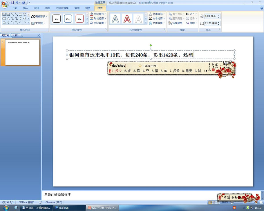 再打开ppt2007,真的可以顺利输入中文汉字了。