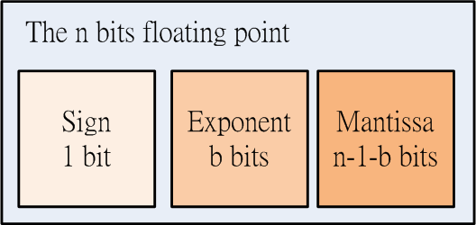 圖 3. 顯示了 一個浮點數如何存放在記憶體內,有時候又稱 floating-point bits level,各位讀者