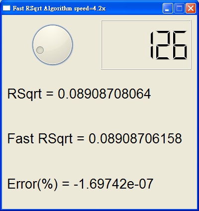 讀者自己去測試就會知道,使用 rsqrtss 計算速度上並不會得到甚麼優勢,因為 SSE 指令內部