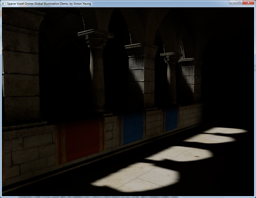 The advantage of voxel cone tracing is to compute the GI in real-time with both the dynamic lighting and geometry. Also the specular indirect lighting gives a very nice glossy effect. However, it uses lots of the processing power/memory and quality of lighting is not as good as the baked solution. In my implementation, I can only use 1 directional light to compute single bounce indirect lighting. And there are still room to improve in my implementation as fewer cones can be used for tracing, using the depth buffer for view frustum culling, better up-sampling when performing cone tracing and divide the voxels into several regions to handle a larger scene like Unreal Engine does. But there is never enough time to implement all that stuff... So I decided to release the demo at this stage first. In the demo, I have added some simple interface (for changing stuffs like the light direction, indirect lighting strength) for you to play around with. Hope you all enjoy the demo.