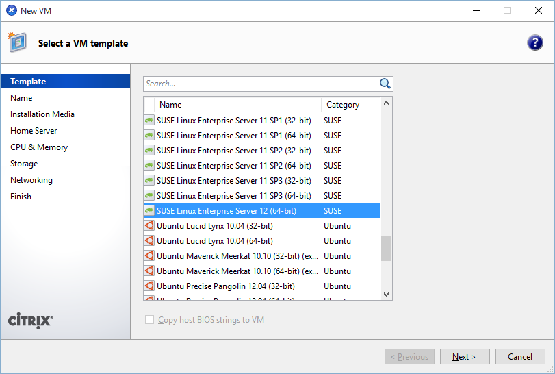 - Create a VM for your Server. For OpenSUSE (13+) it’s OK to use the SLES12 template. “Other install media” is also an acceptable template.