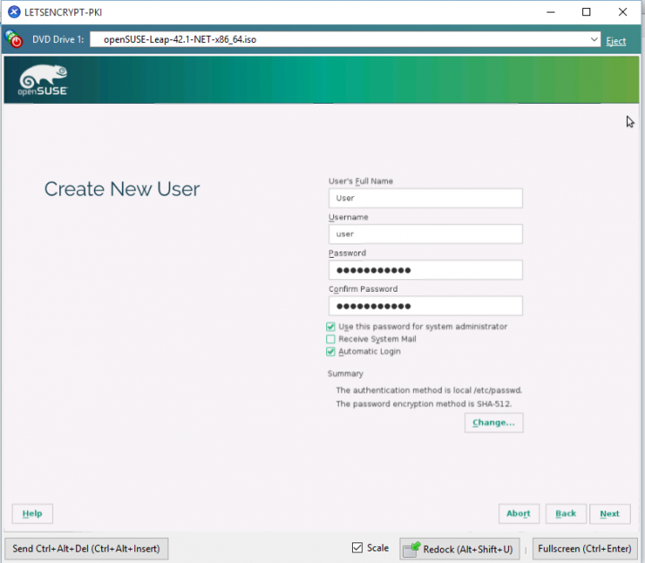 - Create a simple user. This is a point at which you may want to consult with your security team if such a thing exists. If you will be using this in production, it’s important that this server be hardened as it will contain private keys and all of the tools required to register and renew certificates. If someone steals my lab certificate I won’t be heartbroken.