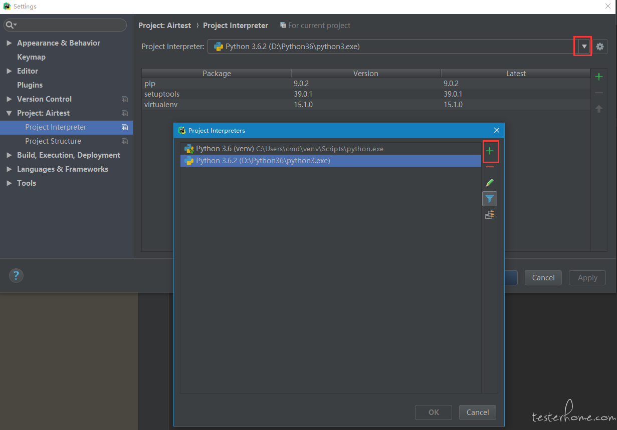打开Settings->Project Interpreter