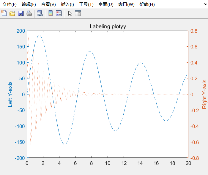 [AX,H1,H2] = plotyy(x,y1,x,y2); % 获取axes句柄和两条线段的句柄